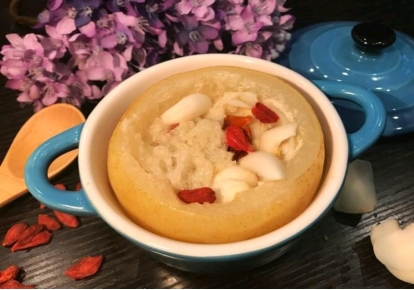 做法:雪梨去核,放入燕窝,红枣等,加入清水约150毫升,放适量冰糖,加盖放入炖盅,隔水炖半小时左右。