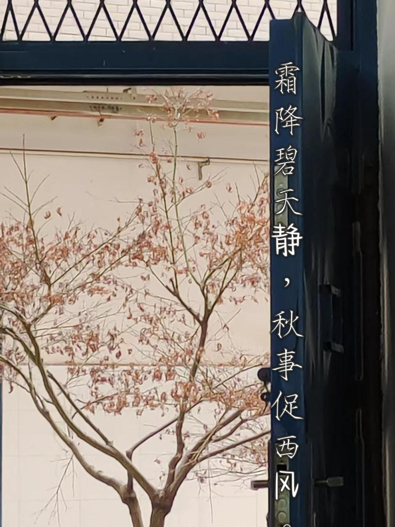 白露为霜至霜降,霜降不是“降霜”,而是气温骤降、中午热、早晚较冷、秋燥明显,冷空气南下越来越频繁。“霜降·楚怡”新韵征稿已落下帷幕,让我们抓住秋天的尾巴,一起共赏镜头下的霜降,校园里的秋色。