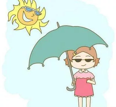 夏天太阳毒辣,如果不做防护措施,人很容易被晒伤。紫外线是加剧皮肤衰老的第一元凶,外出时,准备遮阳伞、防晒衣、防晒霜,做好防晒准备。户外工作的人,最好再戴上墨镜,以免损伤眼睛。