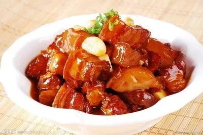 红烧肉的主食材是五花肉,而且还是连皮带肉、肥瘦掺杂的那种。五花肉是猪肉,也是我们日常生活中常见的一种肉制品。猪肉有润肠胃、生津液、补肾气、解热毒的功效。从营养学的角度来讲,猪肉可提供血红素(有机铁)和促进铁吸收的半胱氨酸,能改善缺铁性贫血。但有肥胖、动脉硬化、高血压、糖尿病等遗传易发病及心脑血管疾病患者应少食肥猪肉。