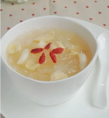 百合味甘、微寒,归肺、心经,主要功效有润肺止咳、清心安神,对咳嗽有一定的辅助治疗作用。对于虚烦、惊悸、失眠、多梦等问题,百合有清心安神的作用。银耳是菌中之王,味甘、淡、性平,含有天然的植物胶质,有补脾开胃,滋阴润肺,增强免疫力的功效。