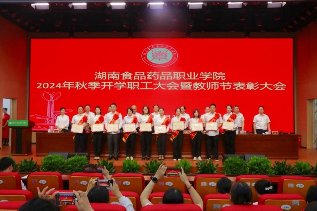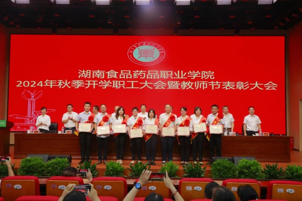 党委委员、副校长邓兴国宣读了湖南食品药品职业学院关于2023-2024学年优秀教师、优秀教育工作者的决定。万能等18名同志获得“优秀教师”荣誉称号,王华、蒋伟红同志获得“优秀教育工作者”荣誉称号。与会领导为获得以上荣誉的教师代表颁奖,并勉励大家珍惜荣誉,再接再厉,发挥模范作用,再创新的业绩。