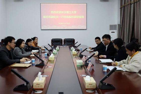 2026年3月19日,长沙理工大学科学技术处副处长卿志和一行莅临我校,围绕科研管理、产教融合、学科建设等工作开展调研指导。我校党委委员、副校长万琼,继续教育学院负责人、相关二级学院领导及骨干教师代表参加座谈交流,此次调研为两校搭建了沟通合作的桥梁,为我校科研与教学发展注入新活力。