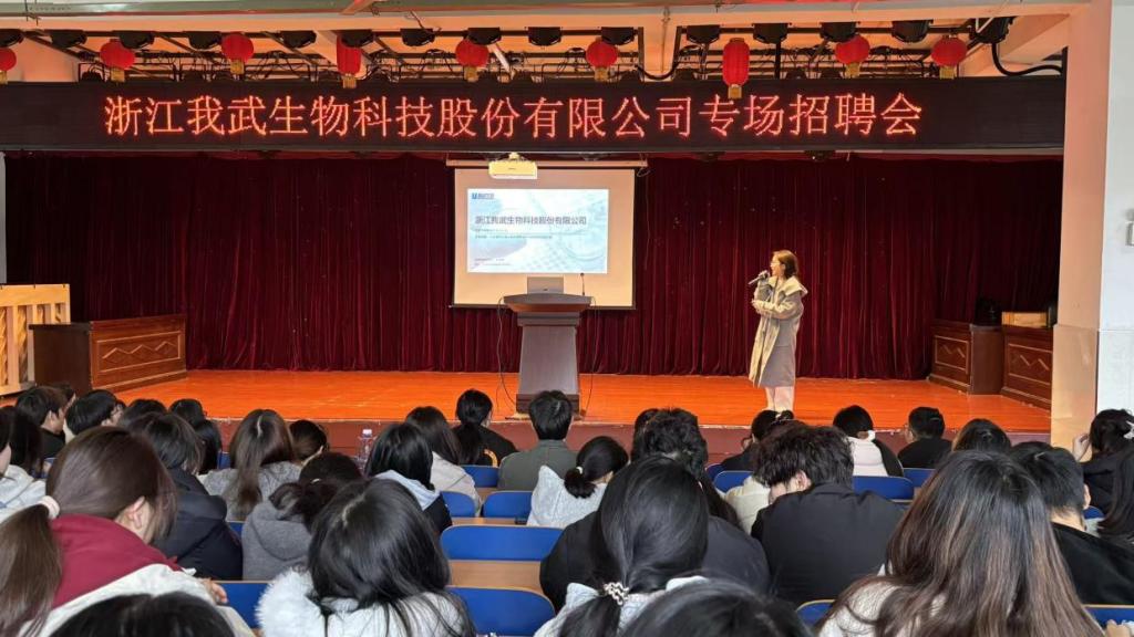 本次宣讲会特邀浙江我武生物科技股份有限公司、樊文花化妆品有限公司两家企业到场宣讲。宣讲现场,企业代表依次向同学们介绍公司发展概况、核心业务、实习岗位需求、人才培养体系及职业发展路径,耐心解答同学们关于实习内容、薪资待遇、就业前景等问题,现场互动氛围热烈。