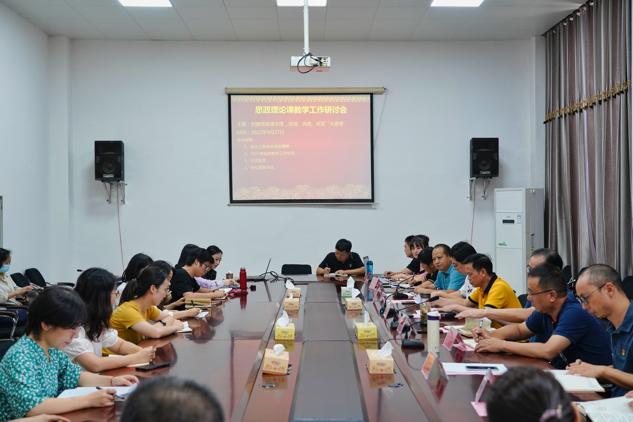 为深入贯彻落实教育部办公厅的“习近平新时代中国特色社会主义思想概论”课建设推进会精神,充分发挥思政理论课在学生思想政治教育中的主渠道作用,提升思政课教学质量和水平。2022年9月27日,我校召开“把握思政课本质,讲深、讲透、讲活‘大道理’”主题思政理论课教学工作研讨会。学校党委副书记、校长虢剑波、党委副书记、副校长李光锋、副校长张雪昀等校领导、相关部门领导及全体思政理论课教师参加本次研讨会,会议由马克思主义学院总支书记王建田主持。