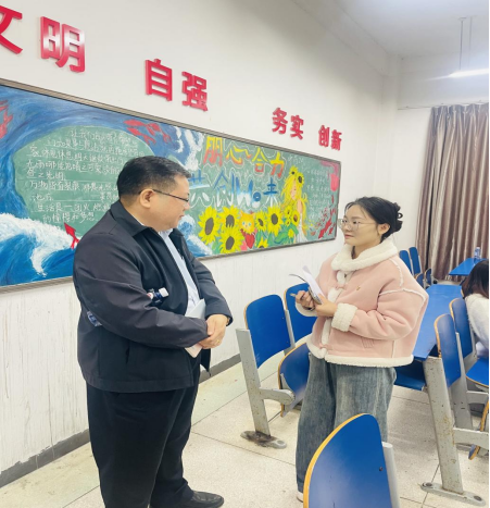由湖南工业大学马克思主义学院院长李正军、衡阳师范学院马克思主义学院院长彭斌、湖南铁道职院马克思主义学院书记田文艳组成的湖南省高校思想政治理论课教学指导委员会专家组来我校开展思政课听课指导检查工作,在我校领导陪同下采取随机“推门听课”的方式分别听取了雷芬老师所授的《习近平新时代中国特色社会主义思想概论》课程、曹娟老师所授的《毛泽东思想和中国特色社会主义理论体系概论》课程及史思齐老师所授的《思想道德与法治》课程。课后专家组通过扫码的方式随机选取部分学生进行网上问卷调查,教指委专家还同任课教师进行了深入的交流。