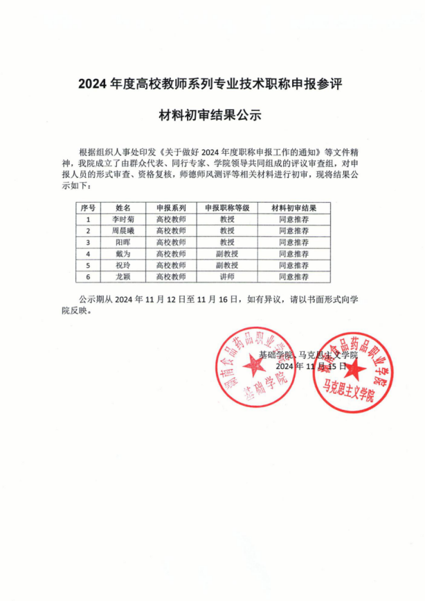 2024年度基础学院、马克思主义学院高校教师系列专业技术职称申报参评