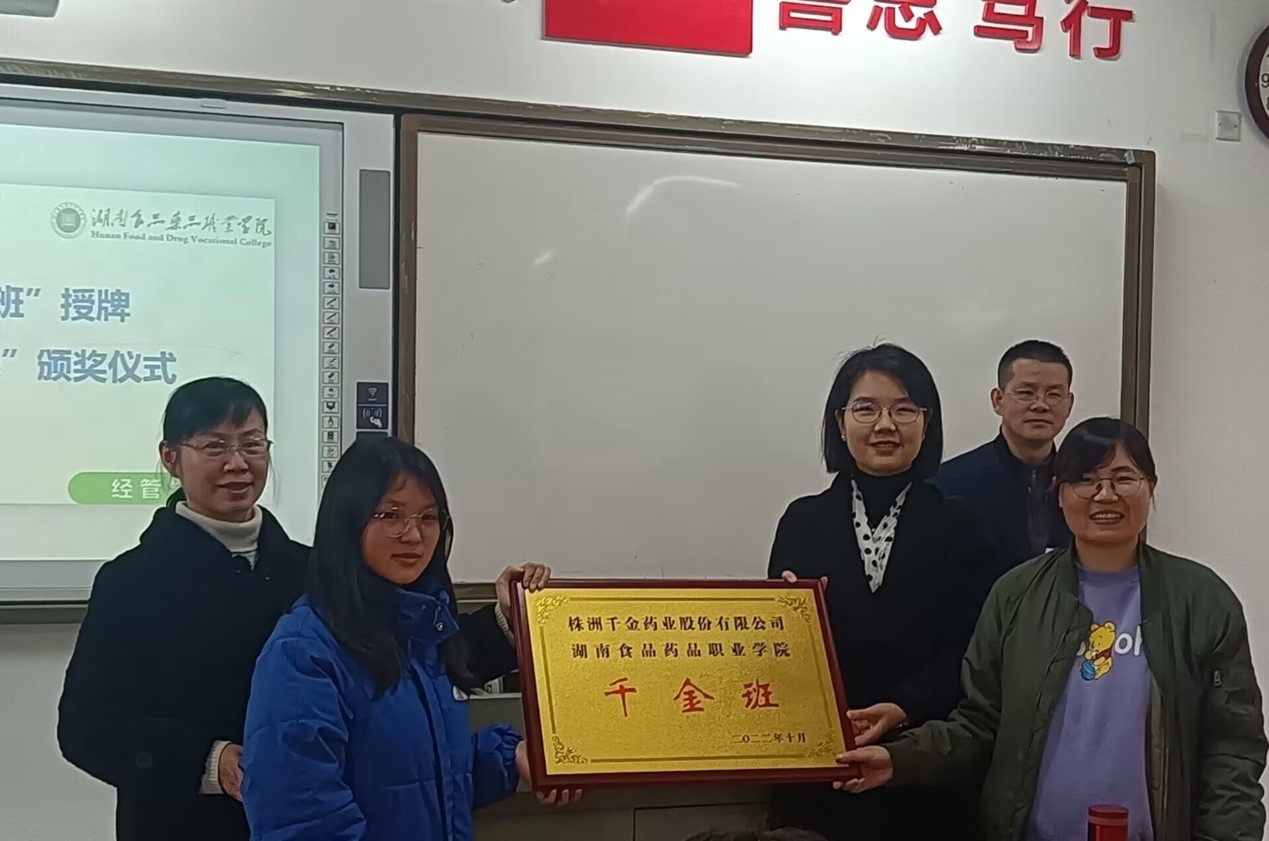 2023年3月21日下午,经管学院2022级“千金班”授牌暨2021级“千金班”颁奖仪式表彰大会在新实验楼504教室隆重举行。千金药业股份有限公司人力资源部总经理朱岩婷、招聘经理漆智慧、学校校级领导甘湘宁、经管学院班子成员及2021级、2022级“千金班”全体同学莅临现场。会议由经管学院院长刘喜红主持。