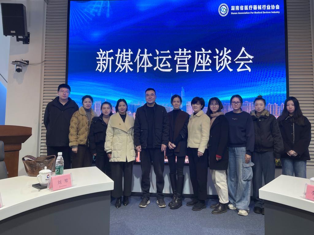 为深化校企合作,精准对接医疗器械行业发展与人才需求,2026年3月20日上午,我校经管学院与湖南省医疗器械行业协会在省医疗器械大厦文化馆举行座谈交流会。会议由协会党支部书记、秘书长赵晶晶主持。湖南省医疗器械行业协会执行会长路海涛,宣传部部长周宇及新媒体运营团队代表,我校经管学院副书记邓媚,副院长戴波等共同出席会议。