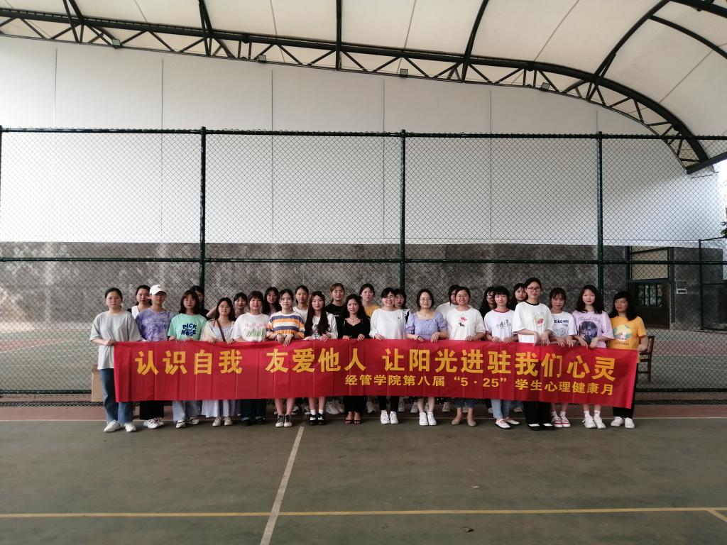 为了促使学生在交往中通过观察、学习、体验,认识自我,探讨自我、接纳自我,调整和改善与他人的关系,减轻心理压力,增强心理素质,提升心理健康水平。我院结合经管学院特点,在我校举办第八届5.25心理健康月活动氛围下开展了“认识自我,友爱他人,让阳光进驻我们心灵”为主题的大学生心理素质拓展活动。