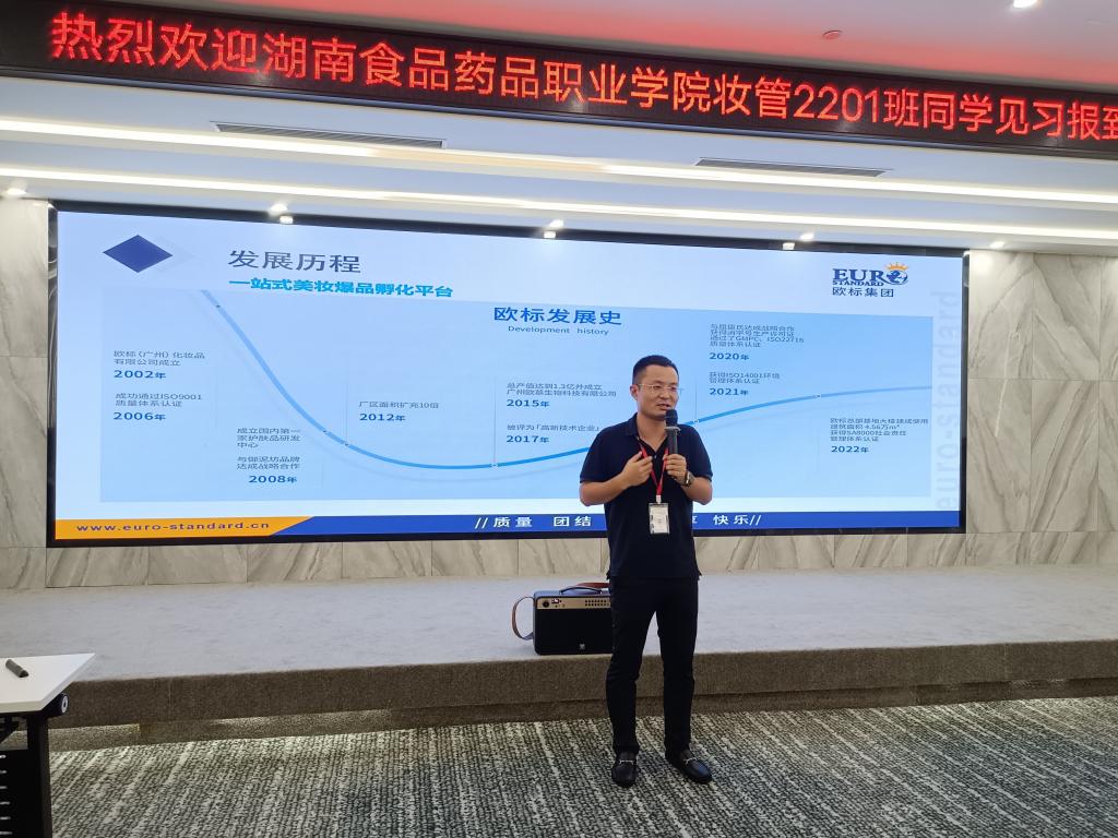 公司总经理董剩智对我校师生一行的到来表示热烈的欢迎,希望通过本次生产见习活动,助力提升学生的生产实操能力及就业竞争力,并为公司输送管培人才,以推进校企合作共赢、产学互补。
