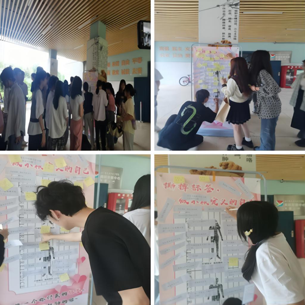 “撕掉标签,做不被定义的自己”活动的成功举办,让同学们感受到了更多的善意和包容,勇敢地去反击那些偏见,说出内心真实的感受,对于引导大学生树立健康向上的审美观和正确的价值观具有重要意义。希望同学们可以真正撕掉心中的“标签”,在未来生活中勇于超越和完善自身,满怀信心去创造属于自己的美好未来!今后学院也将进一步丰富心理健康教育活动形式,提高心理育人工作实效,切实提高学生心理健康水平,增进积极品质,促进全面发展。