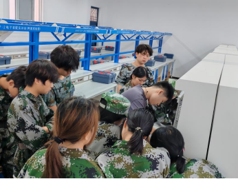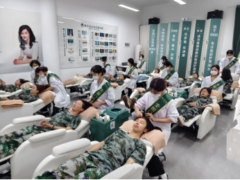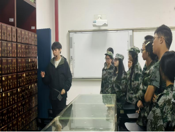 上午10点,新生按专业分组参观各实训实验室。药品经营与管理专业学生在二号实训楼501GSP模拟药房进行实地观摩,通过模拟药品经营场景,学习药品流通与质量管理规范;化妆品经营与管理专业学生前往图书馆樊文花创新创业孵化基地,深入体验面部护肤和了解化妆品营销流程;医疗器械经营与管理专业在二号实训楼305电工电子实训室参观先进设备,掌握器械操作与安全管理要点。各实验室讲解员细致引导,新生们踊跃提问,现场互动频繁,专业氛围浓厚。