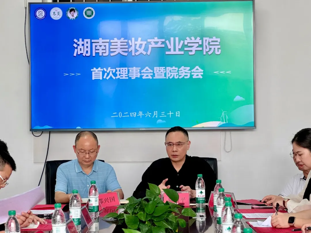 随后湖南美妆产业学院理事长、院长易敬平主持召开首次理事会暨院务会,参会的学校、协会及企业代表共同商议美妆产业学院三年建设方案、年度工作计划等事项,谋划美妆产业学院建设发展。