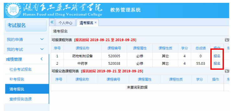 登陆新教务系统(http://111.8.38.130:8090/)-考试报名-成绩管理-清考报名-点选科目报名即可。(初次登录账号、密码均为学号,每人限报8门)