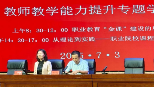 为助力教师把握职教改革方向,赋能高素质“金师”队伍建设,切实提升育人质量,7月3日,教务处组织开展在“启智赋能·锻造金师”教师教学能力提升专题学习顺利开班,开班仪式由校党委委员、副校长罗杨主持,我校全体专兼职教师参加培训。