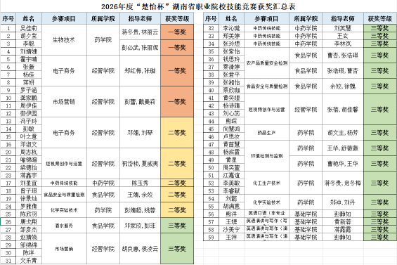 近日,2026年度“楚怡杯”湖南省职业院校技能竞赛圆满落幕。湖南食品药品职业学院在本届竞赛中实现历史性突破,取得了自参赛以来“一等奖最多、获奖赛项最广、获奖总人数最多”的历年最佳成绩,充分展现了学校近年来深化教学改革、强化技能人才培养的卓越成效。