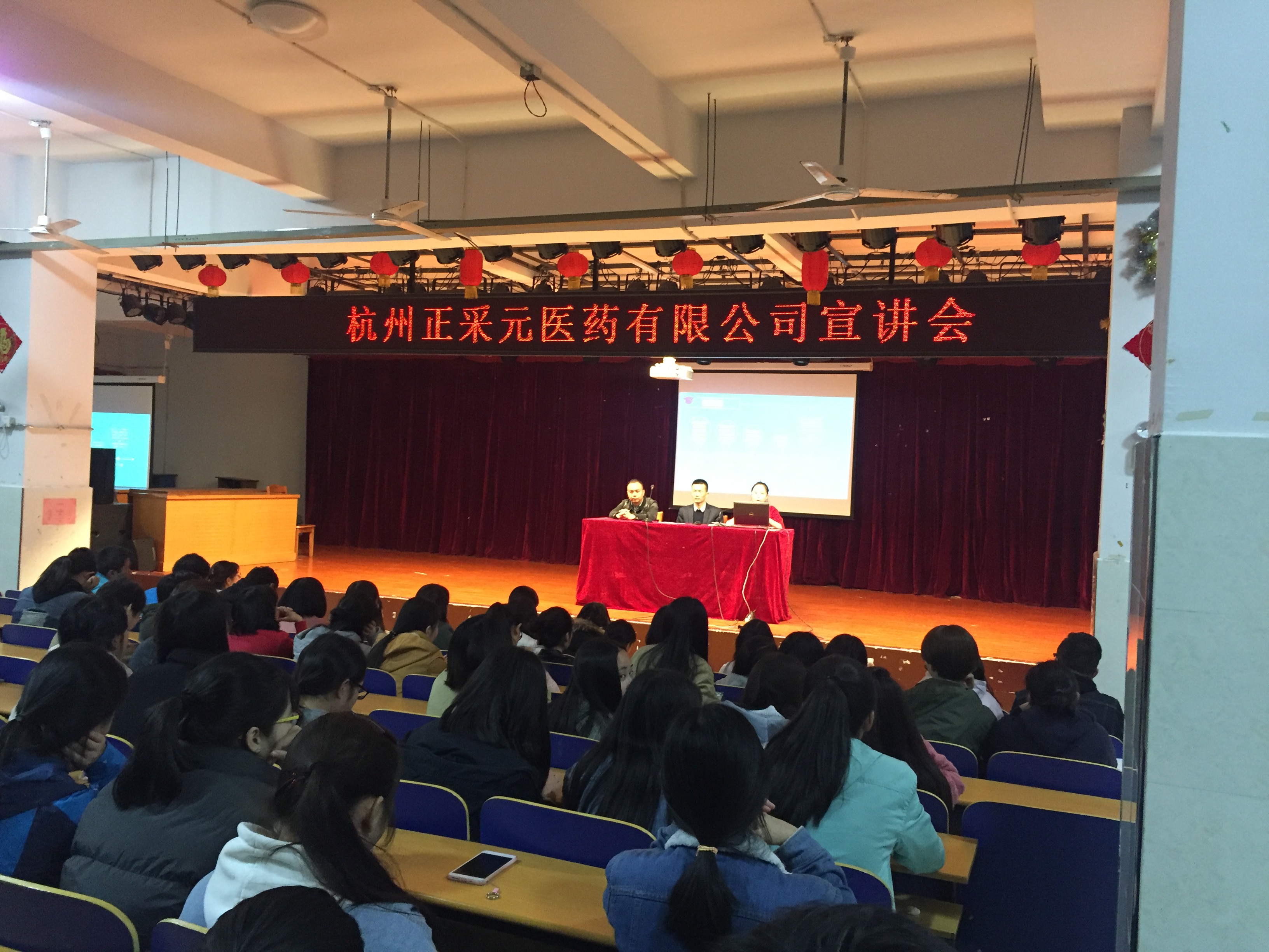 4月11日晚,招生就业处组织杭州正采元医药有限公司在我院多功能报告厅举行专场招聘宣讲会。