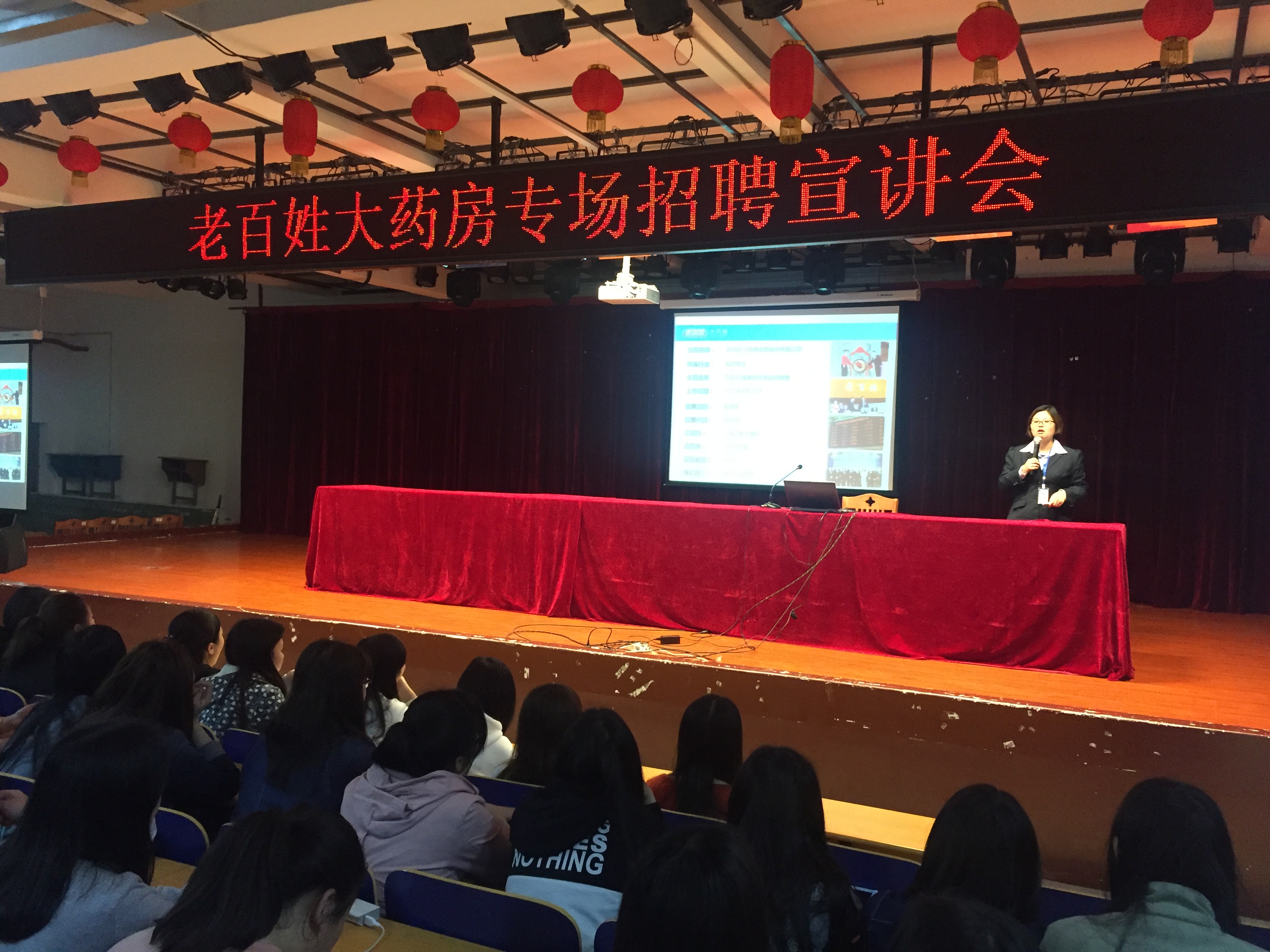 4月6日晚,招生就业处组织老百姓大药房连锁股份有限公司在我院多功能报告厅举行专场招聘宣讲会。