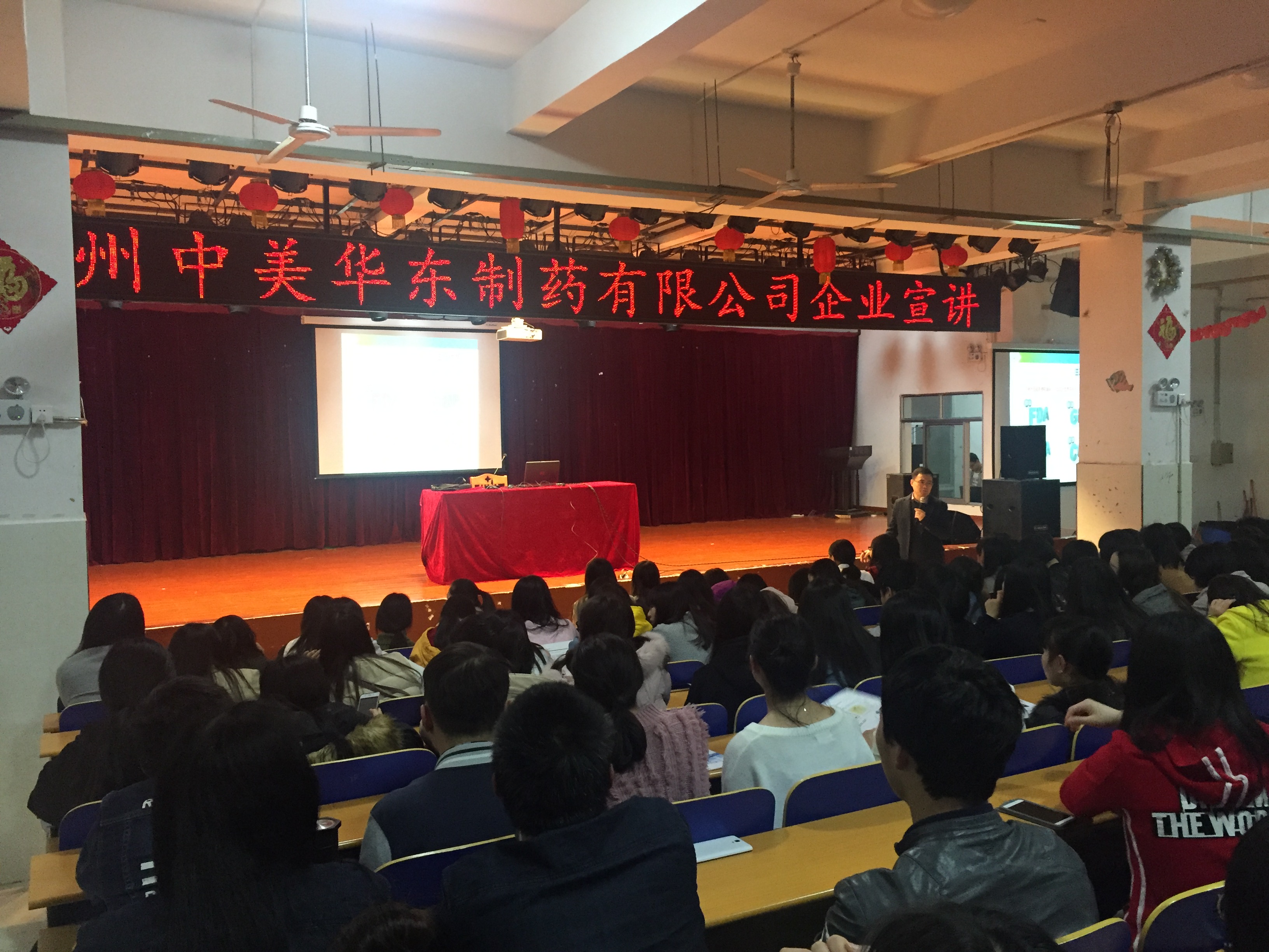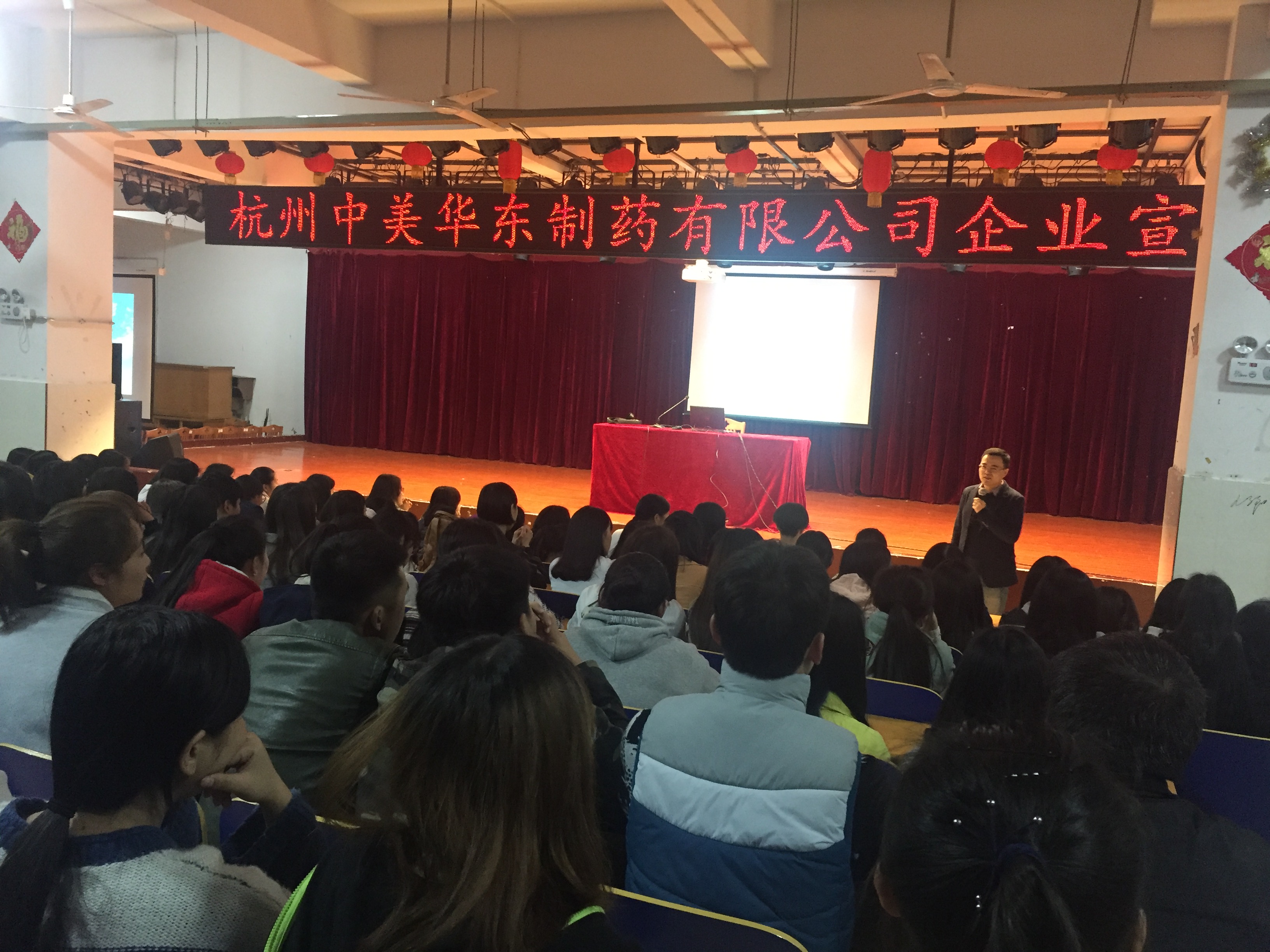 3月27日晚,杭州中美华东制药有限公司招聘宣讲会在我院多功能报告厅举行。