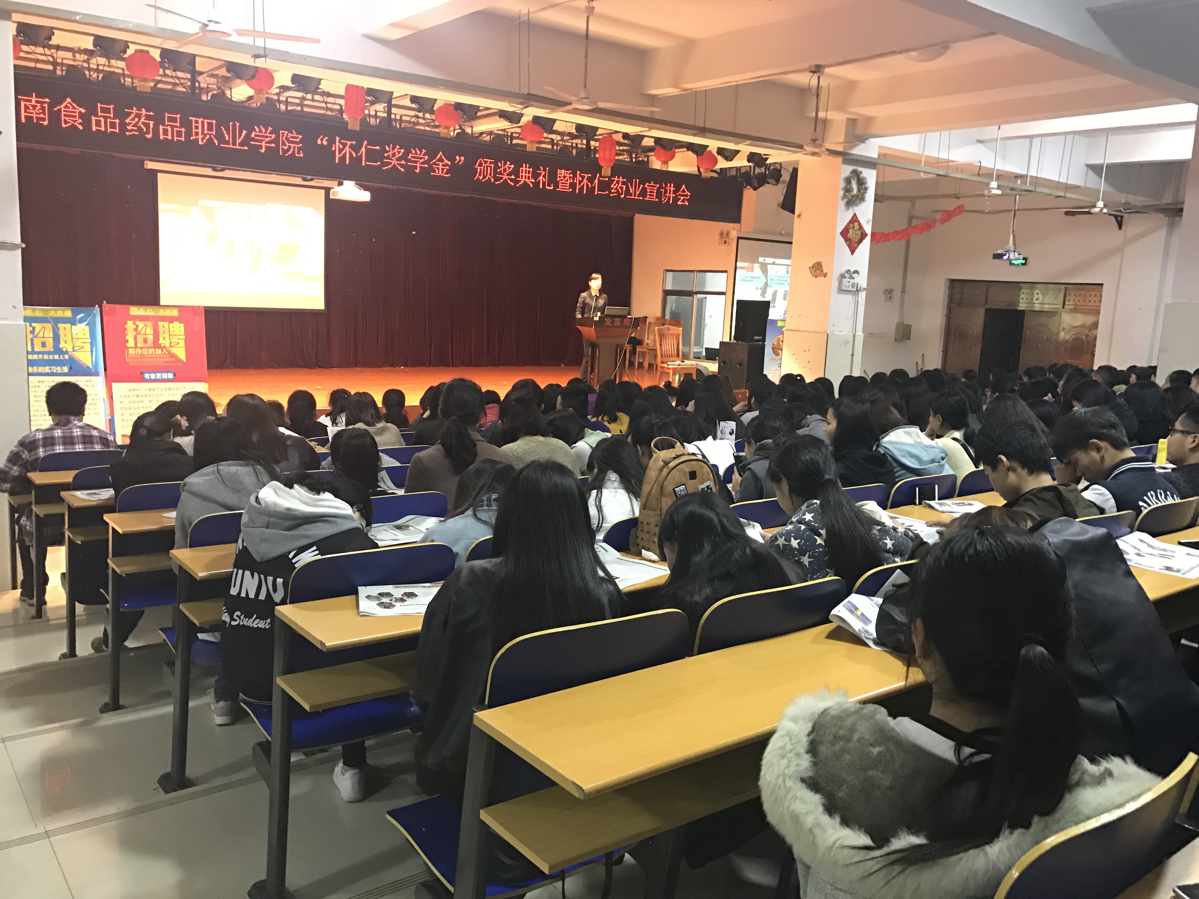 3月29日晚,湖南怀仁健康产业集团 “怀仁奖学金”颁奖典礼暨怀仁药业宣讲会在我院多功能报告厅举行。学院副院长唐荣华、怀仁集团人力资源总监黄春芳等出席,招生就业处组织我院学生参会。