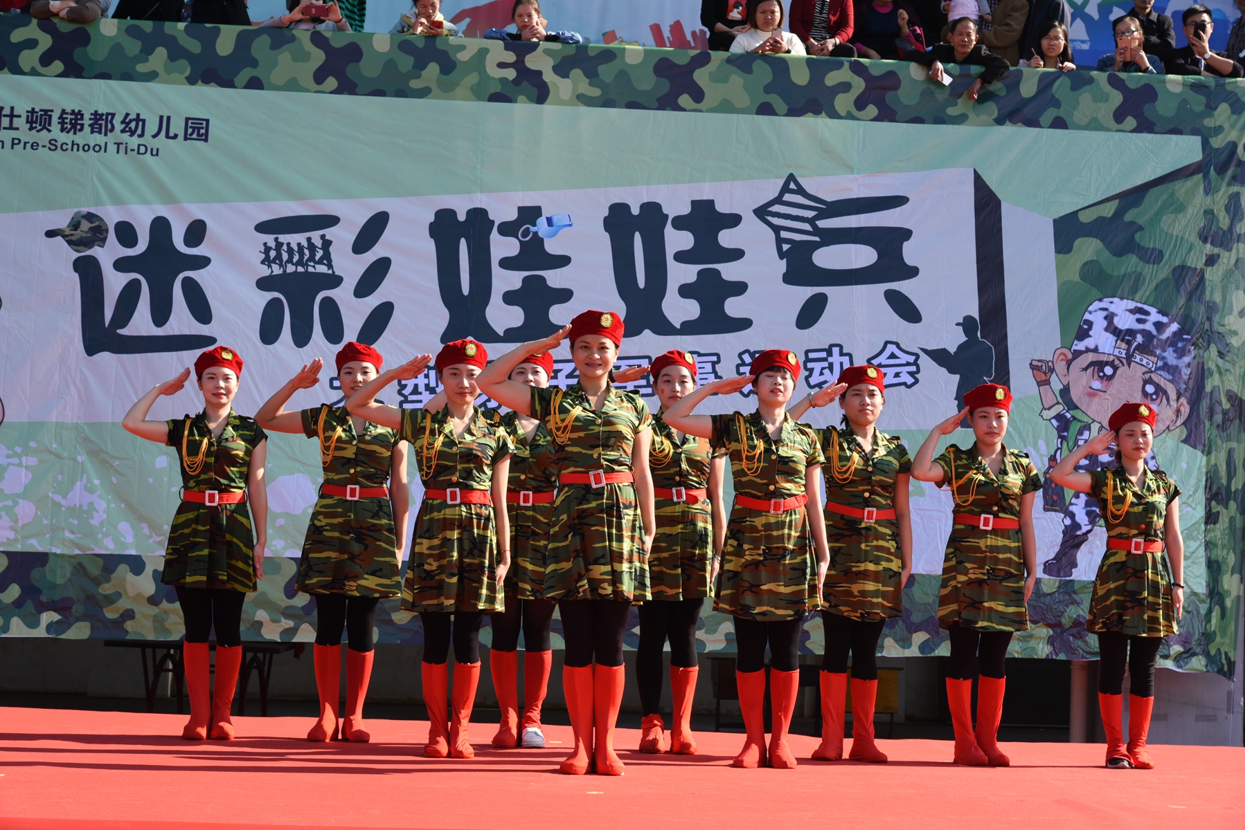 在激昂的音乐声中,以老兵组成的国旗方阵和以新兵组成的园旗方阵走在队伍的最前端,随后11个连队方阵斗志昂扬,口号此起彼伏,稚嫩的脸蛋上洋溢着自信的笑容。接着园长妈妈讲话,老兵代表宣誓,新兵宣誓,老师们以一曲英姿飒爽的舞蹈《潇洒女兵》为运动会加油助阵。随着体智能老师团队带领全体老兵小兵的热身律动《小小兵》的氛围,老兵和新兵的“训练”正式开始。“打探敌情”、“寻找情报”、“疯狂的炸弹”、“坦克大战”、“空中飞人”等一系列军事亲子活动将整个运动会推向高潮。