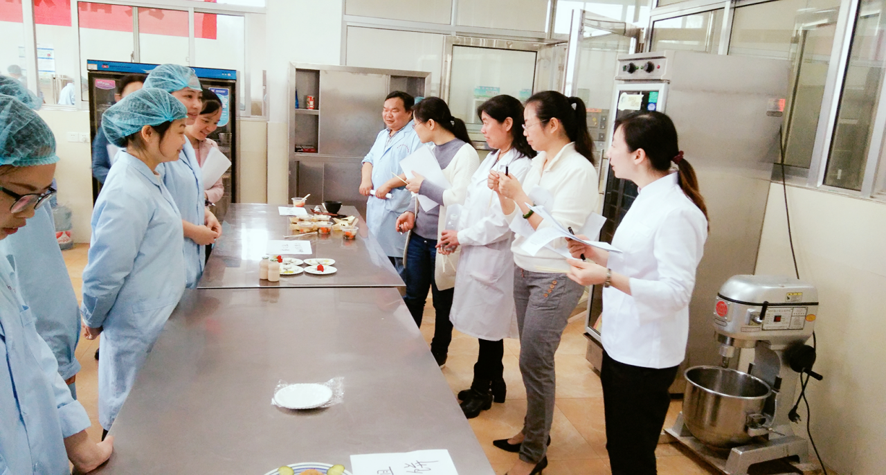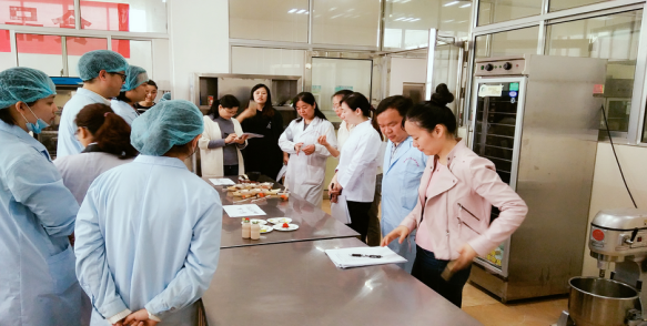 比赛开始前,项目负责人胡梦红老师首先向同学们介绍了赛事规则和出席此次比赛的评委老师,为加强校企合作,促进学习交流,食品学院特别邀请了长沙罗莎食品有限公司的糕点制作袁技师担任特约评委。比赛开始后,各组同学分工明确,精心制作了富于艺术气息的产品,有香飘四溢的遇见彩虹、新奇独特的黄金土豆指等。作品完成后,各组选手依次向评审老师们介绍自己创作的理念和产品的特点,再由评委老师们品尝交流后给出专业性的评价。特别是长沙罗莎食品有限公司的袁技师对学生的每个作品都做了一一点评,肯定了优点,同时也指出了需要改进的地方,我院师生们受益匪浅。