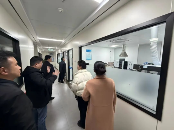会后,在国检集团相关负责人的陪同下,湖南食品药品职业学院食品学院一行参观了国检集团环境安全实验室。参观过程中,实验室负责人详细介绍了实验室的资质能力、仪器设备配置及检测流程。徐魏院长一行对实验室先进的检测设备、规范的管理体系以及雄厚的技术实力给予了高度评价。双方就后续在实践教学、科研合作及人才培养等方面开展深度合作进行了现场交流,为进一步推动产教融合奠定了良好基础。