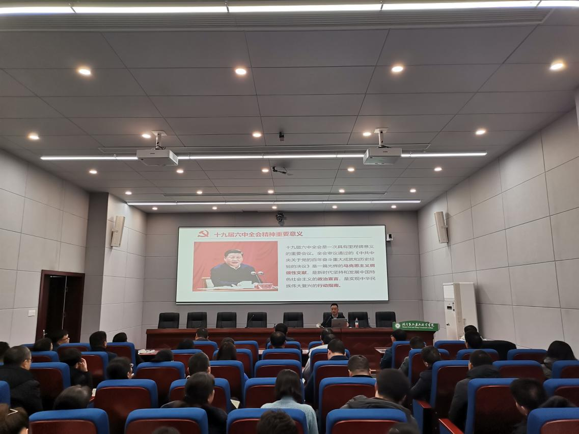 1月4日,湖南食品药品职业学院特邀省委改革办二级巡视员唐超雄来校开展学习贯彻十九届六中全会精神专题讲座。党委理论中心组学习成员、中层以上干部和师生代表聆听讲座。