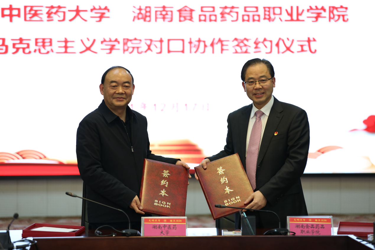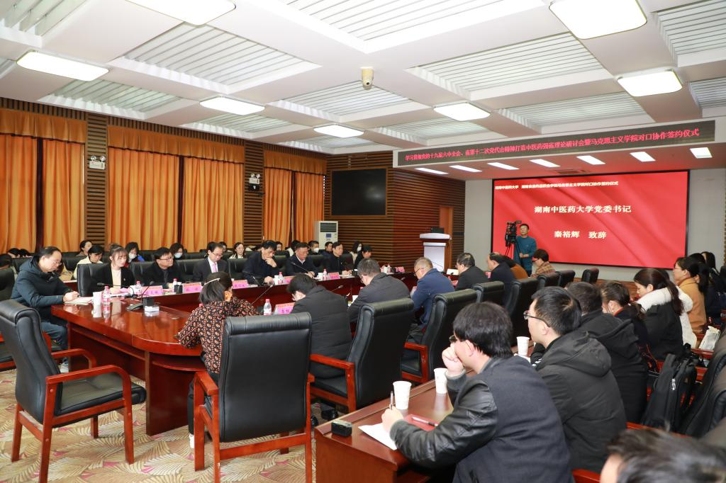 12月17日下午,我校思政部与湖南中医药大学马克思主义学院联合举办的学习贯彻党的十九届六中全会、湖南省第十二次党代会精神打造中医药强省理论研讨会暨两校对口协作签约仪式在湖南中医药大学举行。湖南省委宣传部理论处正处级组织员张民、两校校领导及马克思主义学院和思政理论教师参加活动。