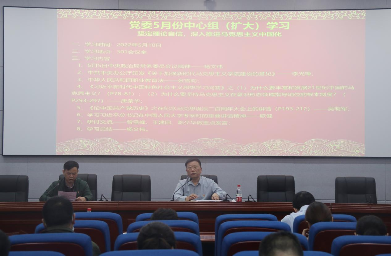2022年5月10日,我校召开5月份党委中心组(扩大)学习,党委书记杨文伟主持。