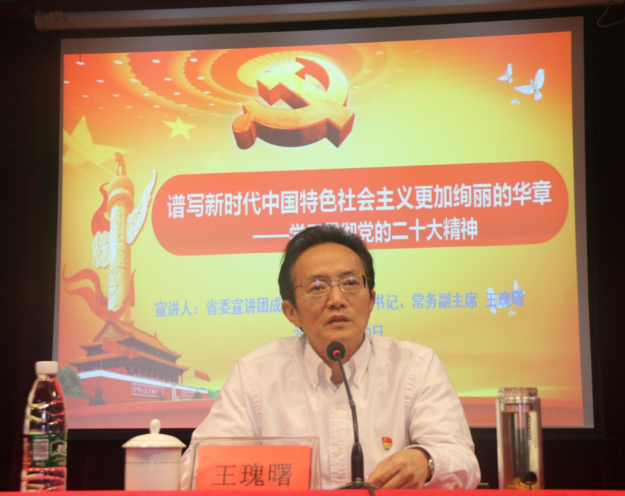 王瑰曙从全面领会党的二十大的主题及主要成果、深刻认识新时代十年的伟大变革及其里程碑意义、不断开辟马克思主义中国化时代化新境界等七个方面,对党的二十大精神进行了系统深入宣讲。