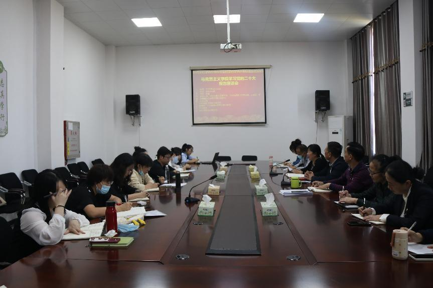 为深入宣传贯彻中国共产党第二十次全国代表大会报告精神,10月18日下午,我校马克思主义学院召开学习中国共产党第二十次全国代表大会报告座谈会。会议由马克思主义学院院长舒展主持,学校党委书记杨文伟,党委副书记、副校长李光锋及马克思主义学院全体教师参加了会议。