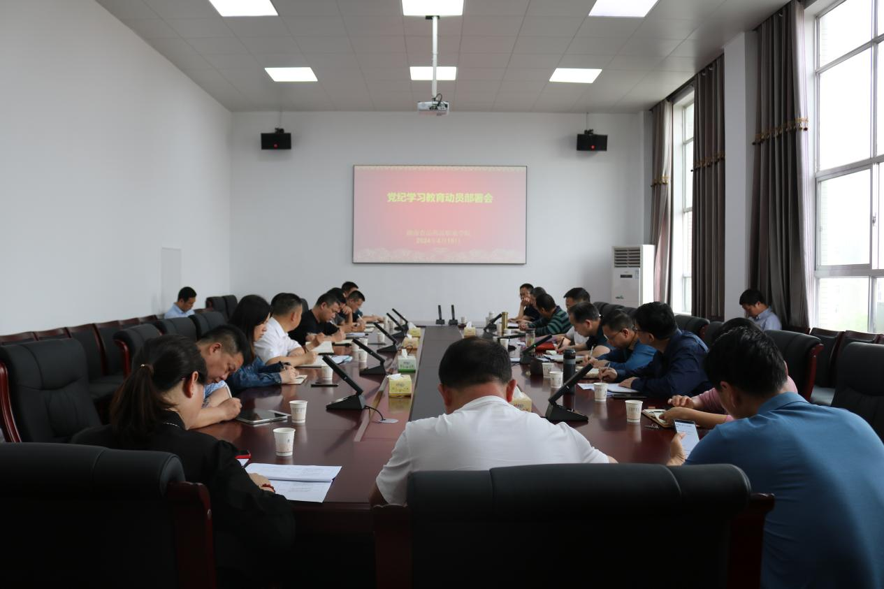 学4月15日下午,我校党纪学习教育部署会议在301会议室举行。学校党委书记杨文伟就党纪学习教育进行了部署,党委副书记、校长虢剑波主持,党委委员、纪委书记吴明军传达省委有关文件精神。学校领导、中层正职干部参加会议。