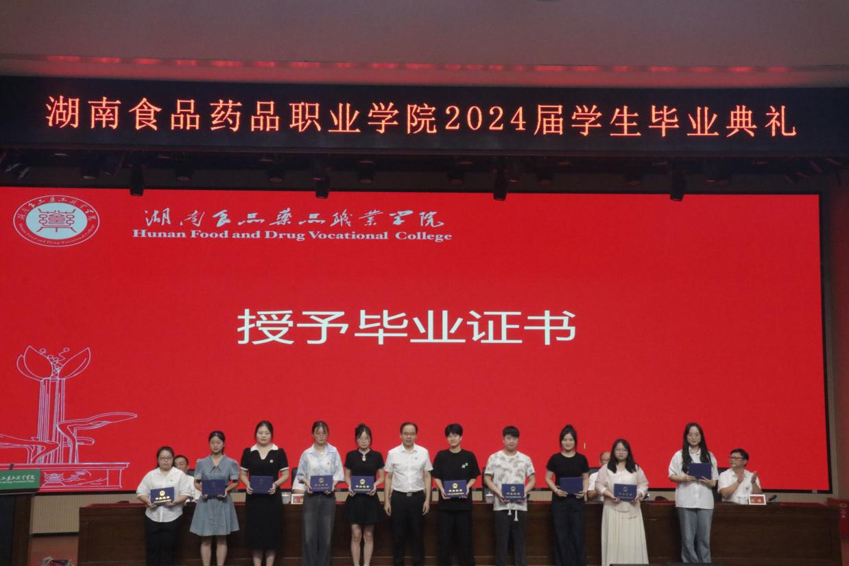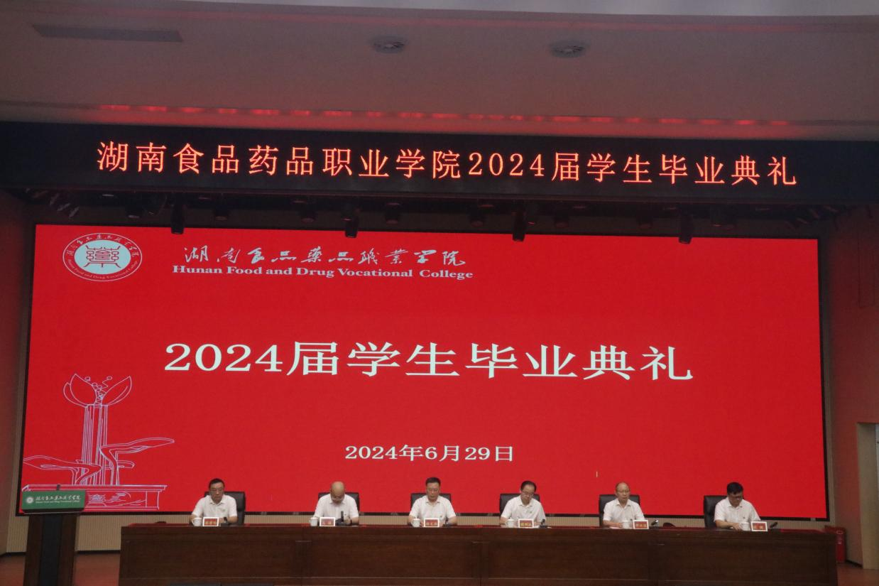 6月29日,湖南食品药品职业学院2024届学生毕业典礼在3号实验楼多功能报告厅以“线下典礼+线上直播”的方式举行。
