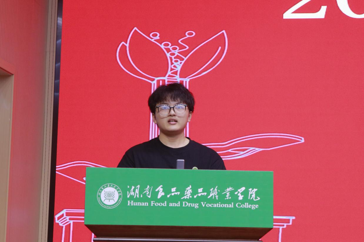 优秀毕业生代表毛戈文发言,他回顾了大学三年的成长与收获,向学校和老师表达感激之情,并表示无论走到哪里,将永远继续践行“食药精神”,肩负时代重任。优秀校友代表万雪梅对即将毕业的2024届学弟学妹们提出了“四有职场新人”的建议,要“有道德,有文化,有价值,有朋友”。毕业后,仍要谨记食药学子的精神,在未来的人生道路中,实现自己的人生价值。教师代表邓多喜回顾了同学们的成长历程,分享了自己的人生智慧,告诫了同学们要珍惜当下,不为无意义的事情烦恼,并寄予了对同学们的美好祝愿和期望。