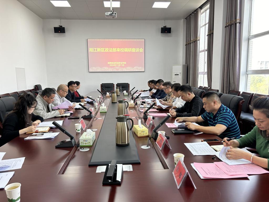 11月11日,湘江新区政法工作部、岳麓区民族宗教事务局、岳麓公安分局、天顶街道、新区教育局一行人来校围绕政治安全、意识形态、民族宗教事务开展专项调研。学校党委副书记吴猛,党委委员、宣传统战部部长欧健及相关部门负责人参加调研座谈。