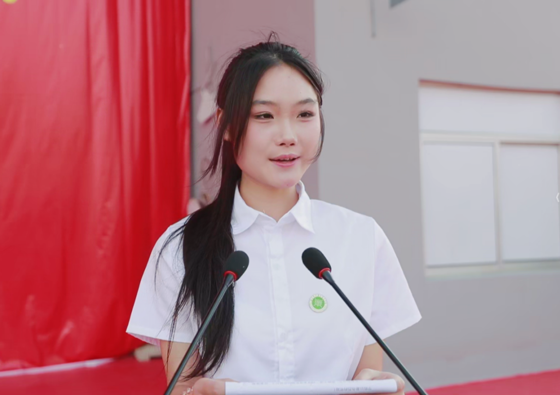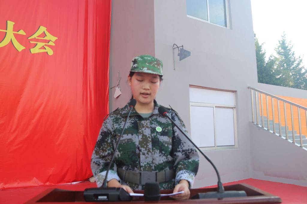 药学2504班陈彦伶代表新生发言并承诺,将以饱满的热情、昂扬的斗志投入训练,迎接挑战、超越自我,确保完成各项训练任务,展现了新生们积极向上的精神风貌。