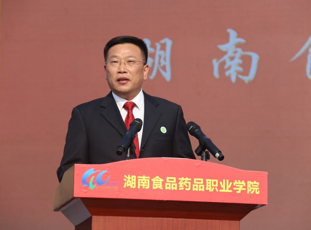 益丰大药房连锁股份有限公司董事长高毅先生代表与学校合作的单位发言,介绍了企业与学校合作发展的情况,衷心祝愿湖南食品药品职业学院在接下来的征程中,焕发出新的青春活力,再创佳绩!