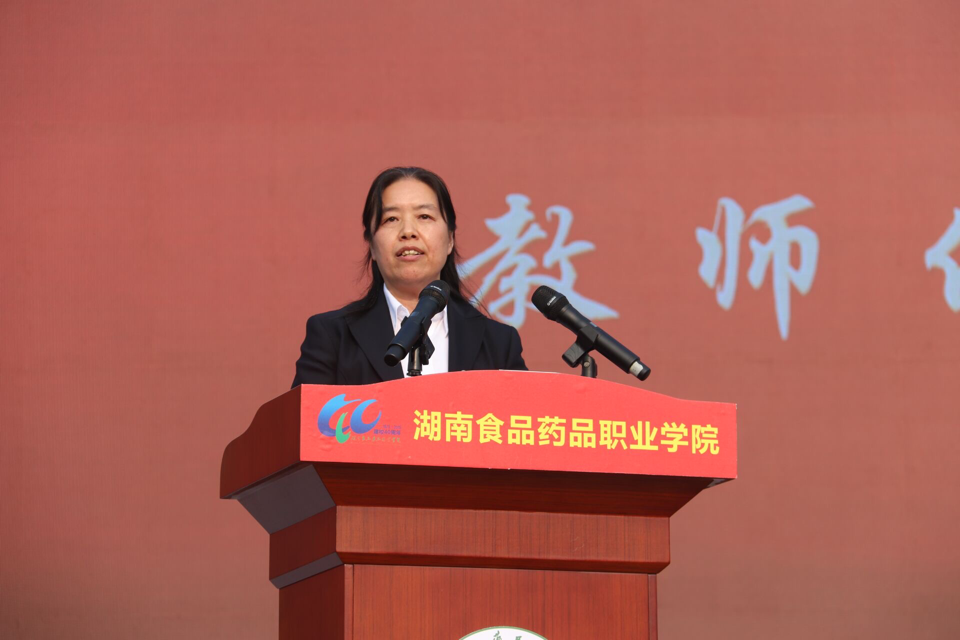 叶云华老师代表所有教师发表了讲话,表示一定会把四十年校庆作为新征程的起点,继续恪守“厚德精技、善思笃行”的校训,秉承“文明自强、务实创新”的校风,牢记教育初心,以立德树人为己任,与时俱进,以最饱满的精神状态、最积极的工作热情投身到各项教育教学工作中去,用自己的激情和汗水,青春与热血,续写湘食药新的篇章,铸造湘食药新的辉煌!