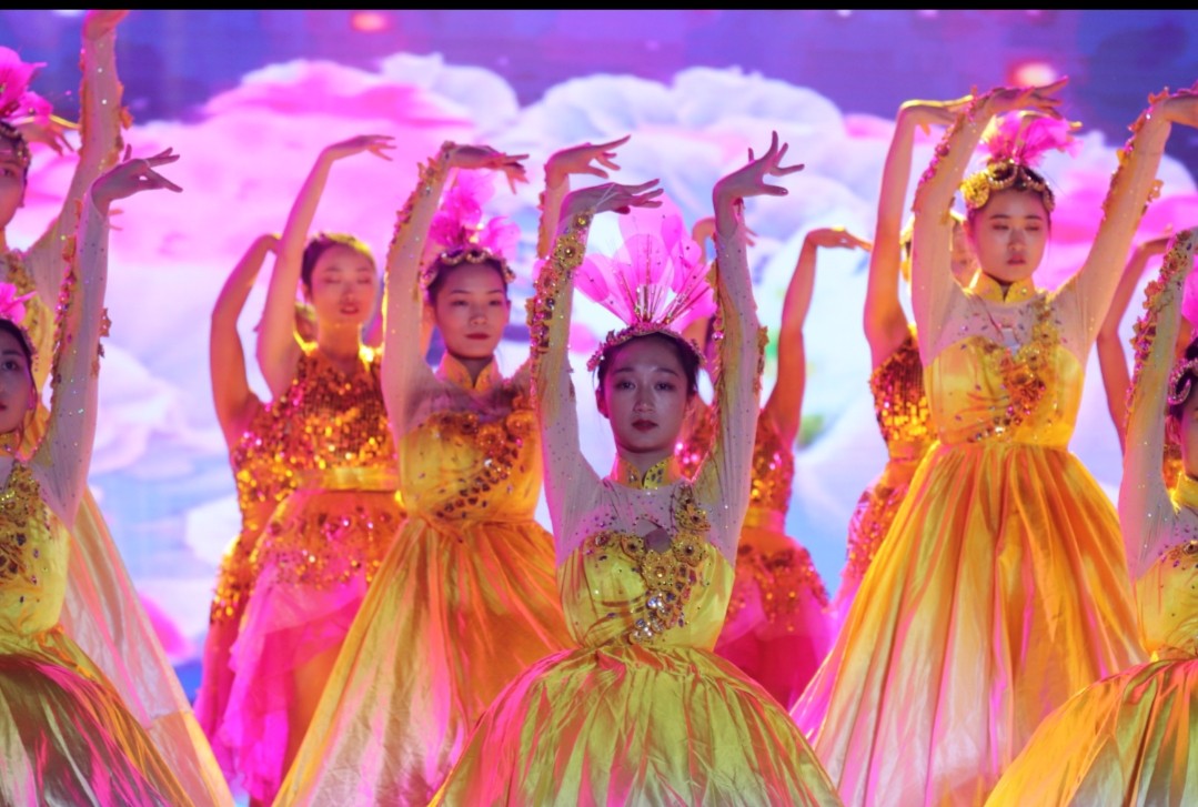 晚会在开场舞《花开盛典》中拉开序幕。演员身着彩色衣裙,花团锦簇,象征着我校40年来硕果累累,人才辈出。