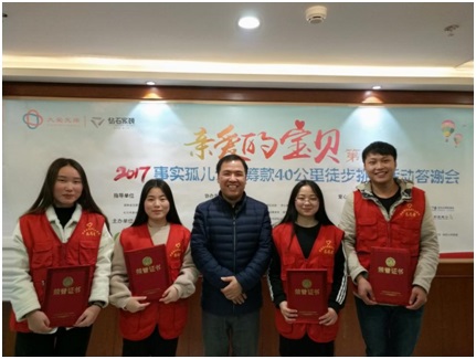 我校青年志愿者协会代表参加2017年“亲爱的宝贝”事实孤儿公益筹款40公里徒步挑战答谢会