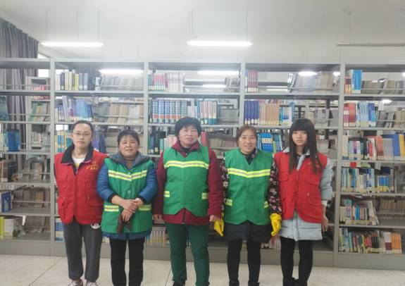 我校青年志愿者协会组织打扫图书馆活动