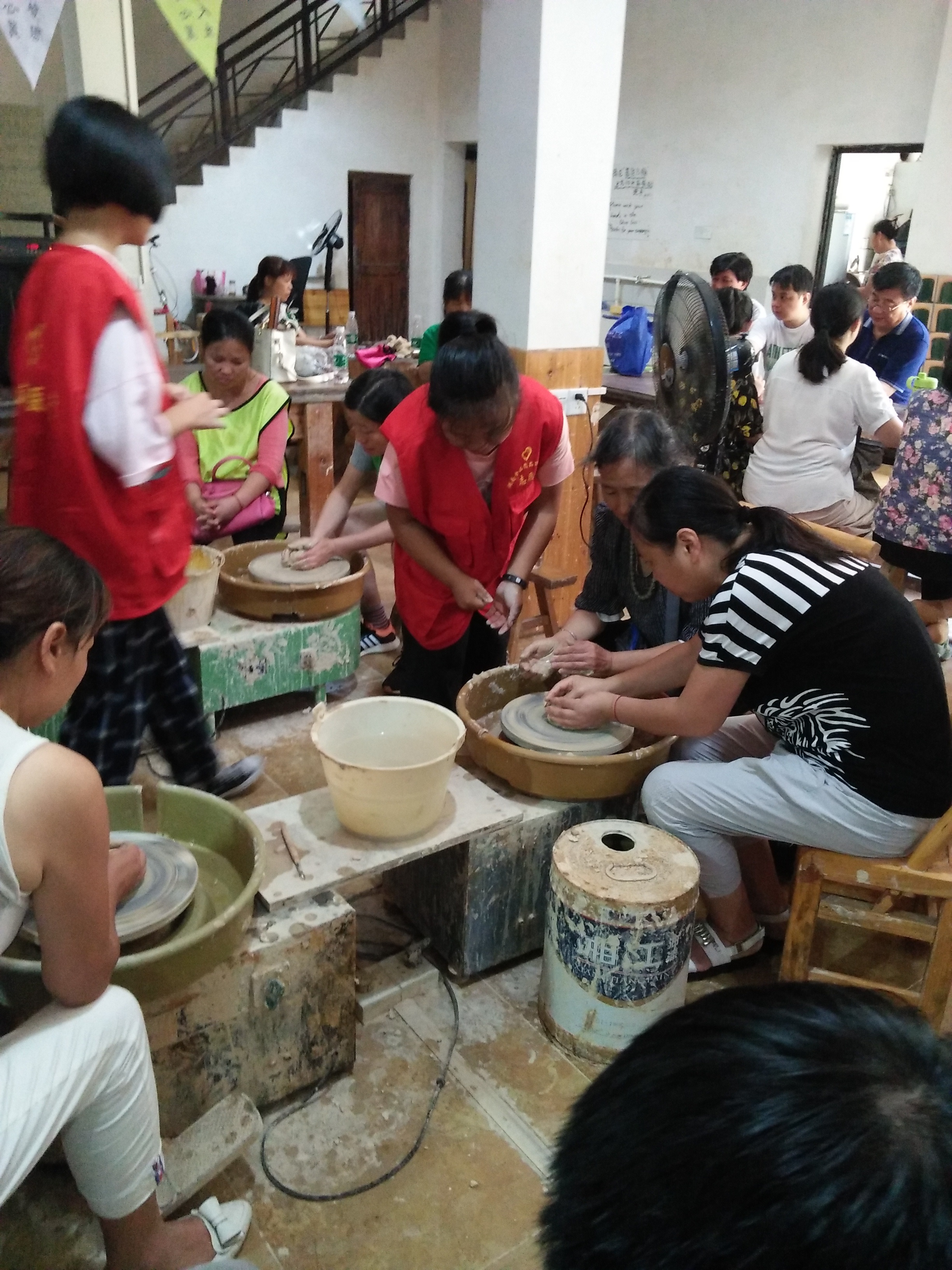 今天天气晴好,惠风和畅,志愿者小伙伴和心翼会所的会员们一起相约来到了古色古香,历史人文源远流长的文化古镇铜官窑。这里地处湘江河畔,绿树成荫,风景宜人,别有一种古风余韵。上午,所有与会人员分成五个小队,跟随着教官,一起协作完成一副约十米长宽的蓝天下图,大家一起手牵手,心连心的图画,充分展现了大家的合作精神与协作能力。下午,大家来到了工艺馆,各自巧施能手,用天马行空的创意创造出一个个精巧玲珑的手工艺陶瓷,展现了自己的心灵手巧的一面。