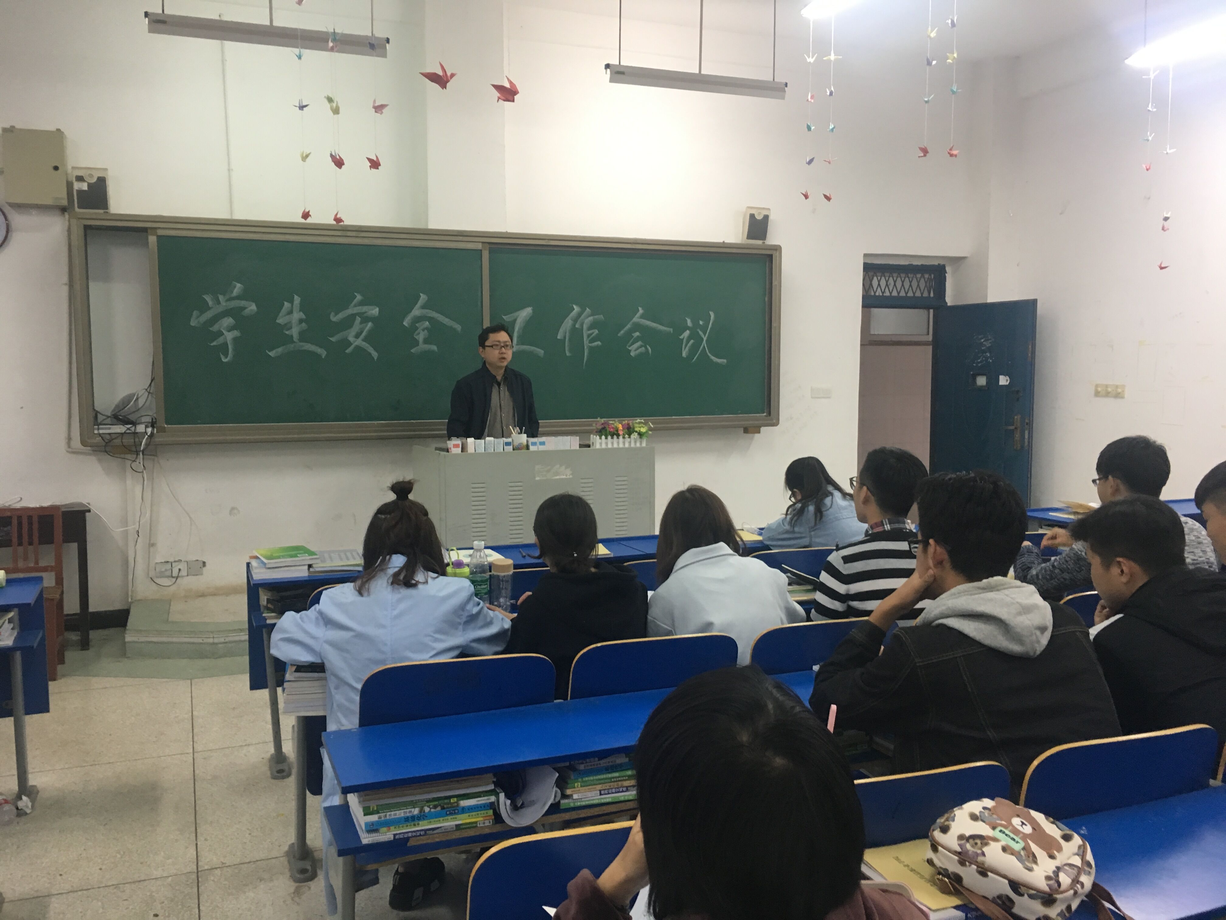 2017.10.12日下午,校级学生干部召开安全工作会议,会议由团委书记熊星尧主持。本次会议内容主要包括五点:一是由宣传部进行网络宣传及宣传栏展示,从学生角度出发,重点抵制校园贷款。二是加强宿舍和教学楼管理及大功率电器安全。三是生活部加强食堂和商店的食品安全。四是安保部加强校园巡逻,并且找到校园内有故障的地方避免事故发生。五是十九大期间的各项工作要严格把关,要避免发生任何安全事故。
