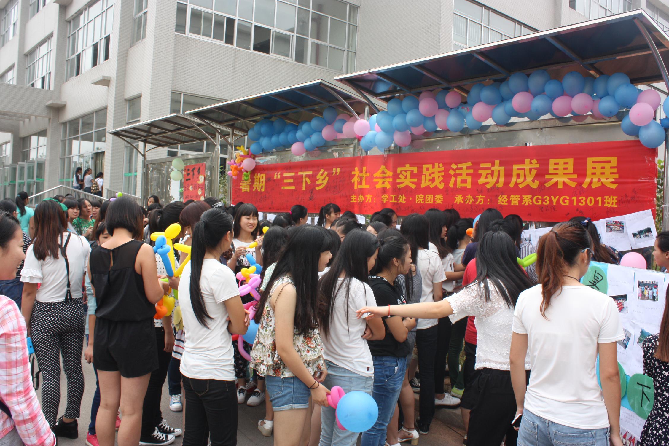 9月23日中午,我院在校园内开展了由学工处·院团委主办,经管系G3YG1301班承办的暑期“三下乡”社会实践活动成果展活动。
