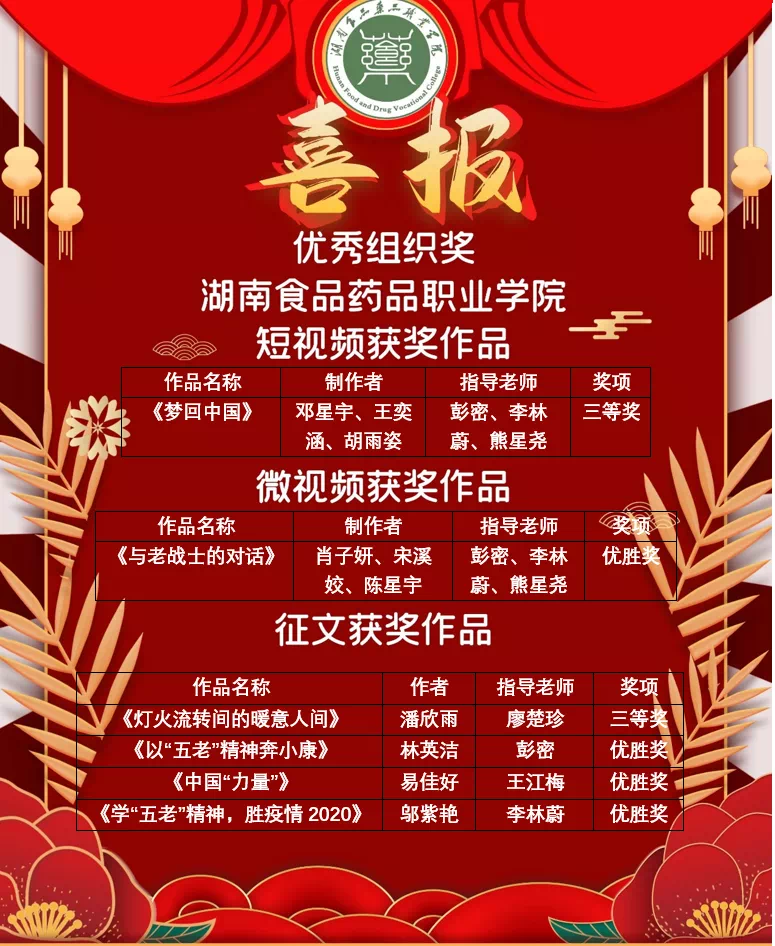 经过我校团委、关工委精心组织,二级学院广泛发动参与,我校征文类作品获奖四篇,微(短)视频类作品获奖两项,并且荣获优秀组织奖。让我们恭喜以下获奖者,望食药学子们再接再厉,勇创佳绩!
