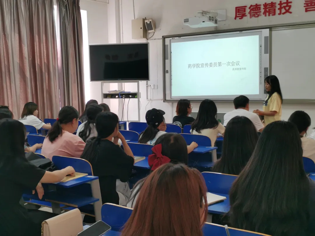 为提高药学院宣传部的工作效率,增强各班宣传委员的凝聚力,9月30号中午,药学院宣传部在教学楼309教室召开了药学院宣传委员第一次会议。校宣传与社会联络、新媒体中心、药学院宣传部相关负责人及药学院各班宣传委员参加此次会议。