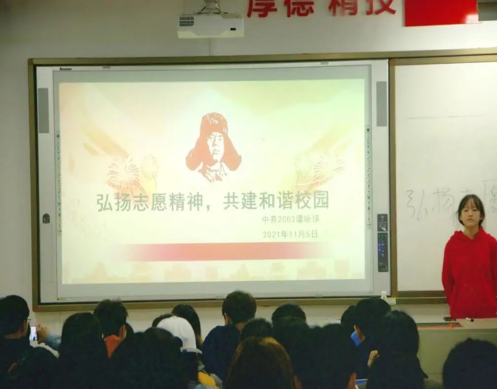 活动过程中主持人具体细致地解读了志愿者的宗旨及志愿服务精神的重大意义,并通过微视频《最美志愿者》的播放和讲解,让同学们深刻认识到志愿服务不仅是看在眼里的感动,更是落在实处的行动,更让同学们了解到志愿服务于自己而言是一种义不容辞的责任与当仁不让的义务。