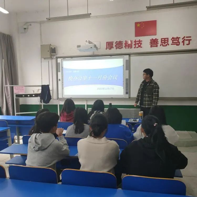 11月17日中午12:30在教学楼108召开了校办公室十一月份第一次全体会议,校办公室三位主任及全体成员参加了本次会议,会议由校办公室主任陈壮主持。会上,校办公室主任陈壮对接下来的重点工作及活动进行了具体安排,同时,指出了各成员在工作中存在的不足和需要改进的地方,并再次强调了工作流程的规范。相信通过此次会议,各成员了解了接下来的工作,明确了目标和方向,希望校办公室全体成员在以后的工作中众志成城,把工作做的越来越好。
